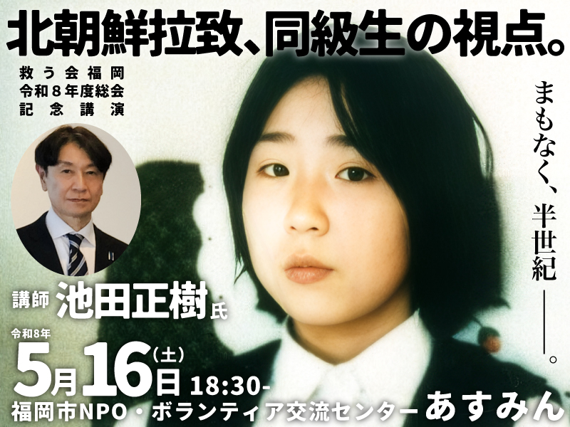 救う会福岡は、拉致被害者家族会と連携する救う会全国協議会加盟団体です。